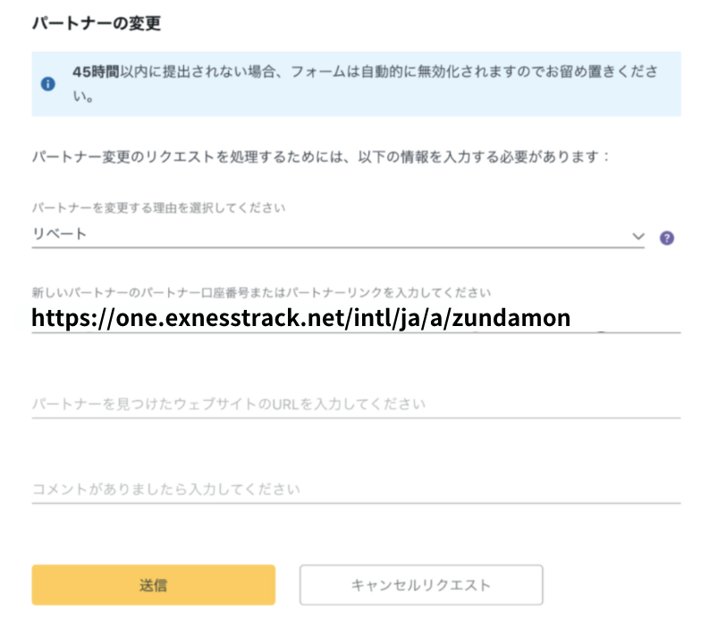 Exnessの担当部署の判断によって、パートナー変更が拒否されてしまうこともございます。