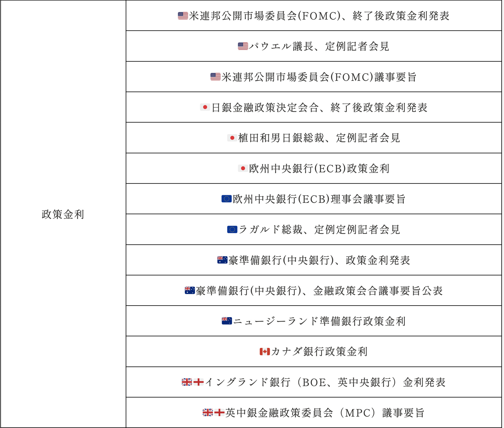 | 🇨🇦カナダ | BOC金融政策委員会 | 年8回 |